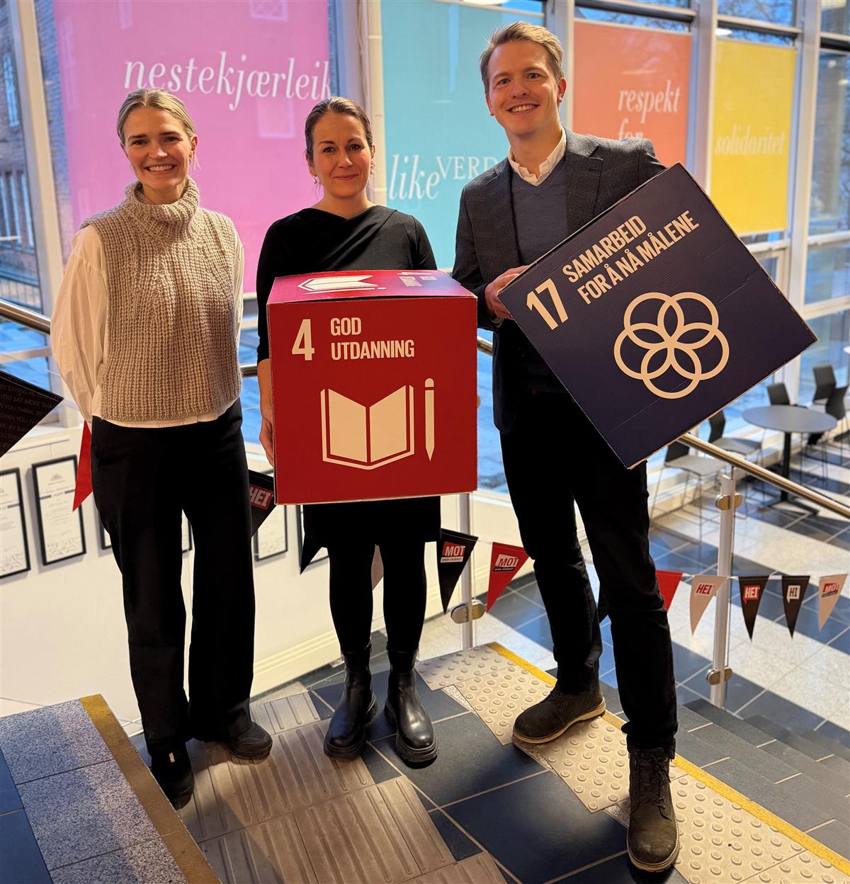 Politisk rådgiver i FN-sambandet Oda Sofie Heien Larsen, leder for hovedutvalg for opplæring og næring i Østfold fylkeskommune Camilla Aas og skole- og utviklingssjef i FN-sambandet Stian Olsen.