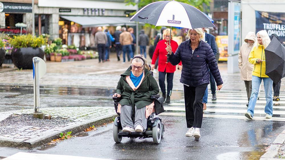 – Jeg er spent på om jeg i det hele tatt kommer meg inn på bussen, om rampen kommer automatisk ned, eller om sjåføren må ut i regnet for å ta den ned. Gidder han det, undrer hun.