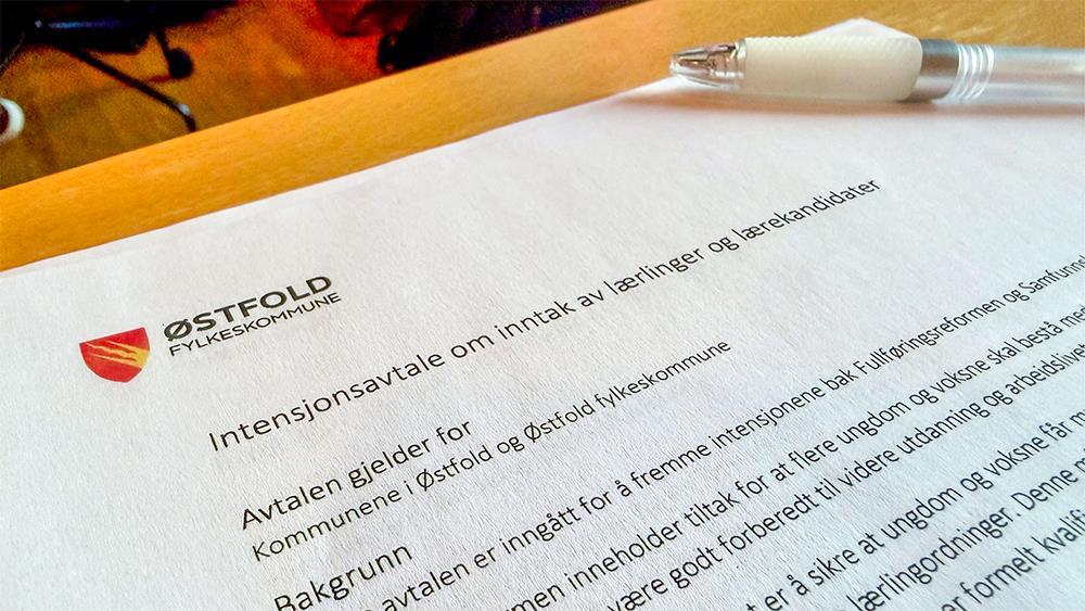 - Østfold fylkeskommune har intensjonsavtale om inntak av lærlinger og lærekandidater med alle kommunene i Østfold.