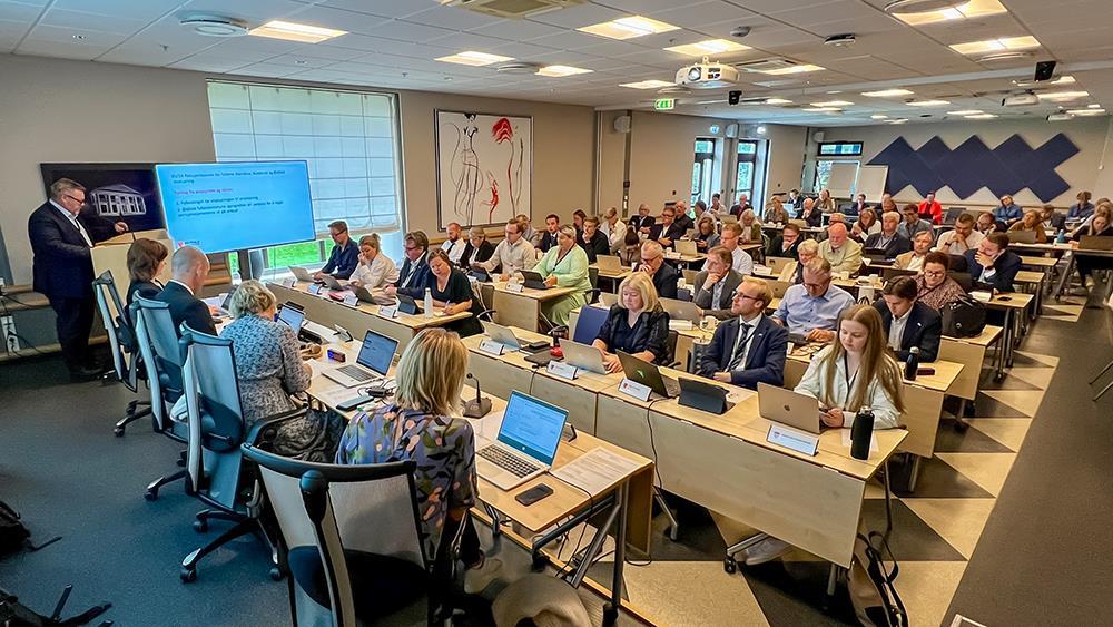 Politikerne i Østfold samles i fylkestingssalen på fylkeshuset i Sarpsborg til fylkesting