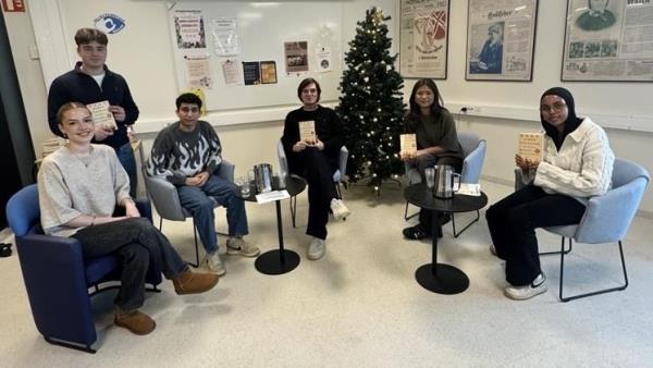 Som en del av bibliotekets leseinspirasjonstiltak, har to VG3-klasser hatt besøk av forfatter Simon Stanger, og hatt bokbad med han.