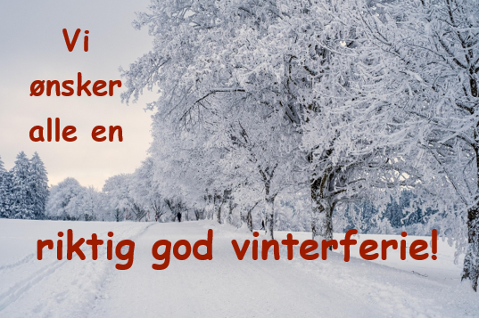 God vinterferie!Uke 8 (16.-22. februar) er det vinterferie, og vi håper alle får en fin-fin uke!Vinterferie Pixabay Publisert av Ingunn Schult Publisert 16.02.2026 09.08 Sist endret 16.02.2026 15.07