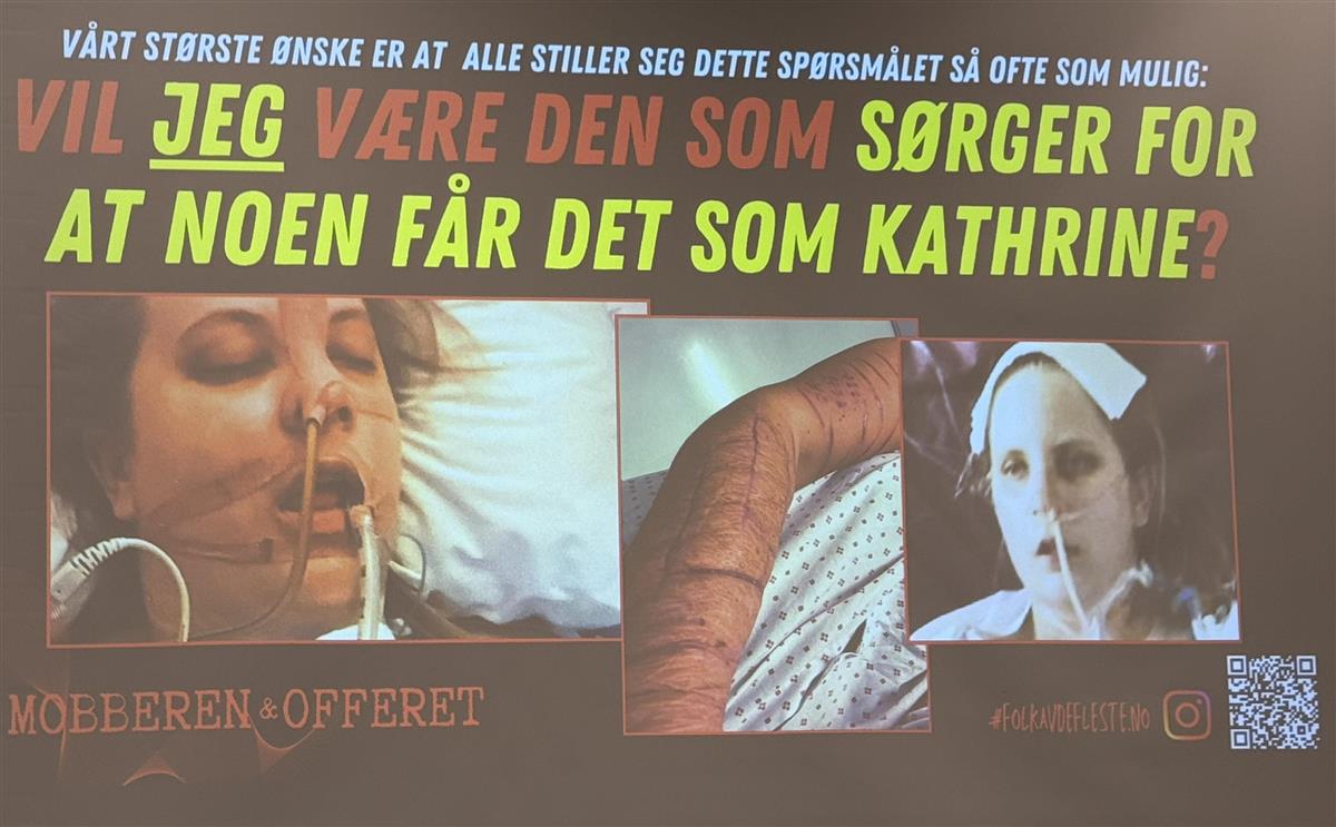 Kathrine gledet seg til å begynne på skolen, men det ble dessverre kortvarig. Mobbingen startet med en gang, og ord og uttrykk ble stadig verre og verre, og det gikk over i vold og trusler. Hun har blitt slått i ansiktet med knyttneve, slått i bakken, dyttet utfor en høyde, og mye mye mer.