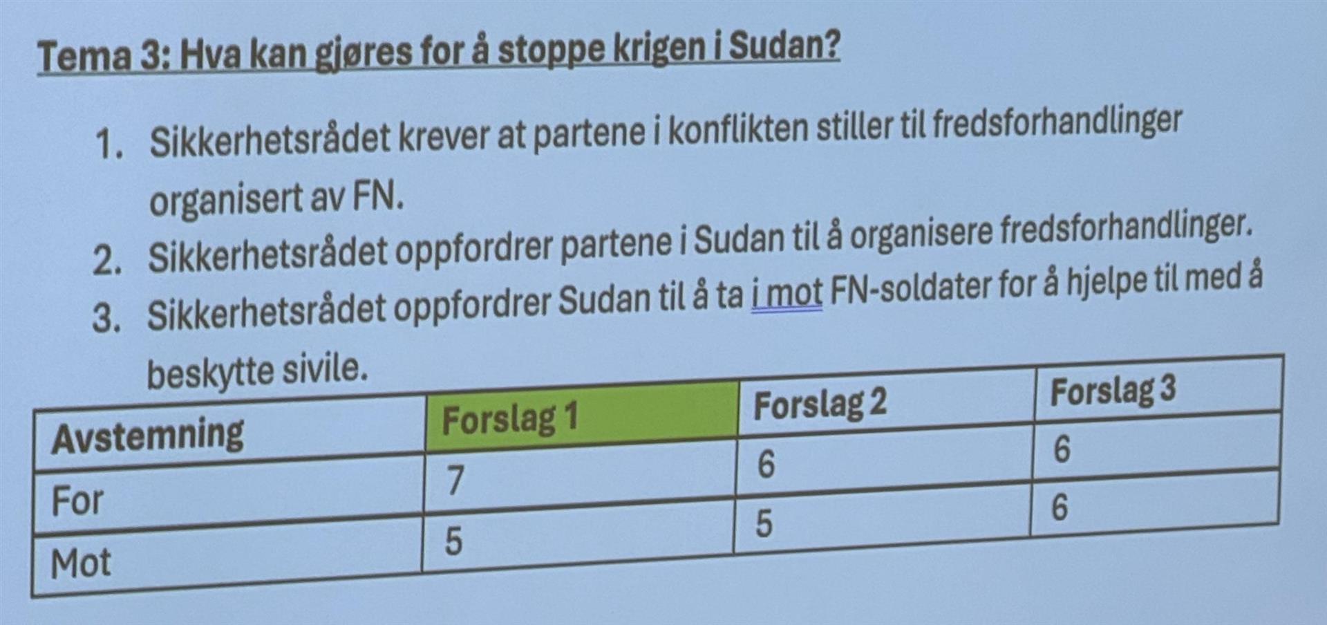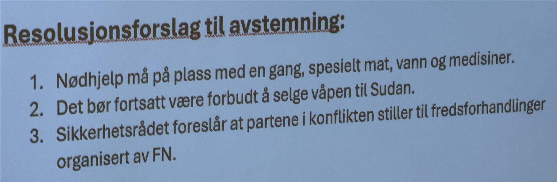 Til slutt sto de igjen med tre punkter i resolusjonen, og alle skulle stemme. Da valgte to land å bruke sin vetorett, så da ble resolusjonen nedstemt.