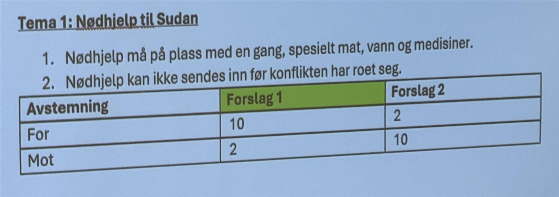 Elevene har i forkant av denne dagen satt seg inn i konflikten i Sudan, samt holdninger sett fra “sitt eget” land, slik at de kunne leve seg mest mulig inn i situasjonen.