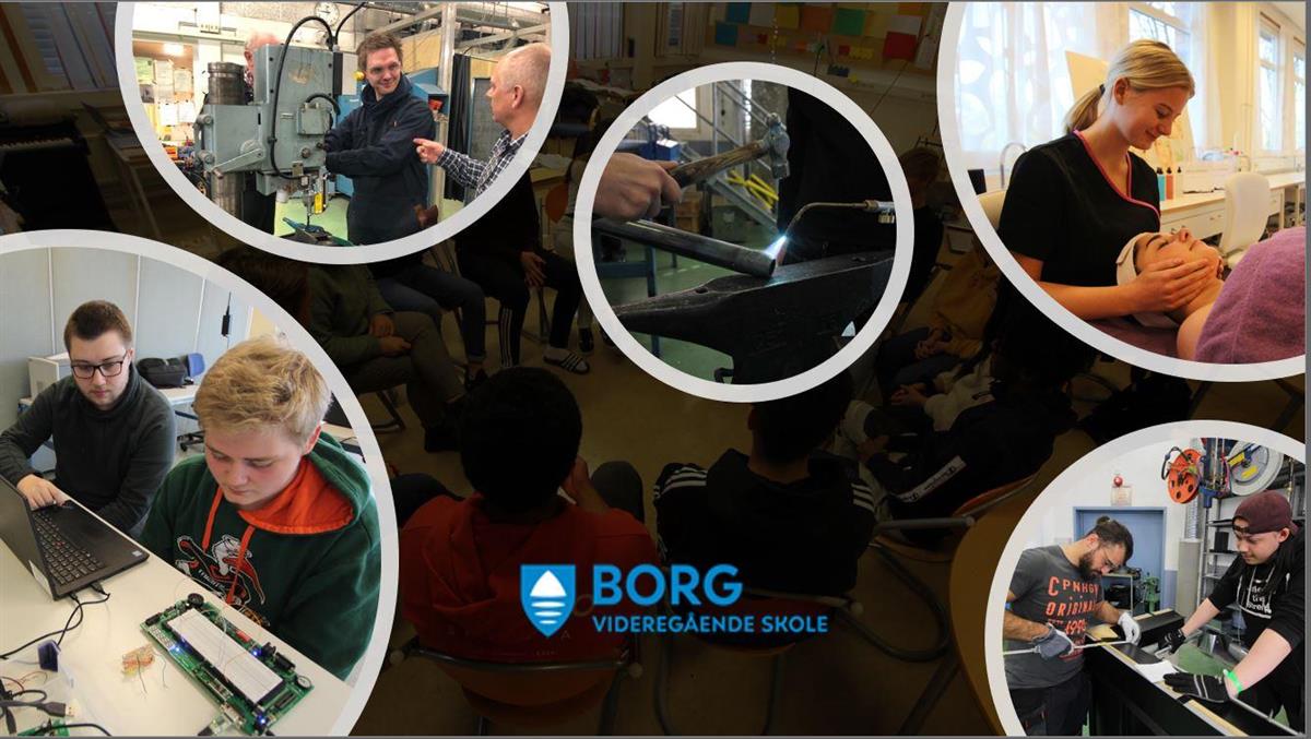 Åpen kveld på Borg vgs 27. januarDen 27. januar inviterer vi på Borg vgs. til åpen kveld fra kl. 17.00-19.00. Åpen kveldAlle er velkomne for å se på den fine skolen vår og alt vi har å tilby, men spesielt 10. klassinger m/foreldre og foresatte og VG1 og deres foreldre/foresatte. Det vil være mange ansatte og elever på skolen den kvelden, for å vise besøkende rundt i verksteder samt presentere tilbudet vi har ved skolen.Det er viktig for oss å formidle at man kan gå på Borg vgs. i mange år til, og at vi skal ha den beste opplæringen for de elevene som ønsker å gå hos oss frem til undervisningstilbudet ved Borg flyttes til andre skoler tidligst i 2029.Velkommen til Åpen kveld 27. januar kl. 17.00-19.00!Her kan du lese mer om våre utdanningstilbud.Se filmen under for å få et innblikk i hverdagen ved Borg videregående skole. Vil du se denne videoen må du godkjenne funksjonelle informasjonskapsler. Publisert av Veronica Tryland Larsen Publisert 03.02.2025 08.20 Sist endret 29.01.2026 10.56