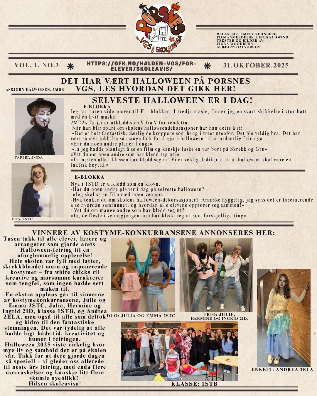 Det har vært Halloween, les hvordan det gikk her! Publisert av Jo Henning Myhrvang Publisert 04.11.2025 13.11 Sist endret 04.11.2025 13.11