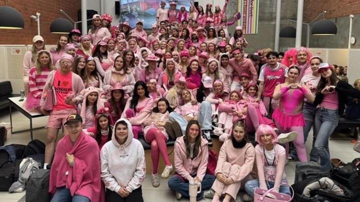 Avgangselevene har hatt en flott markering av rosadagen for å støtte krafttak mot brystkreft.