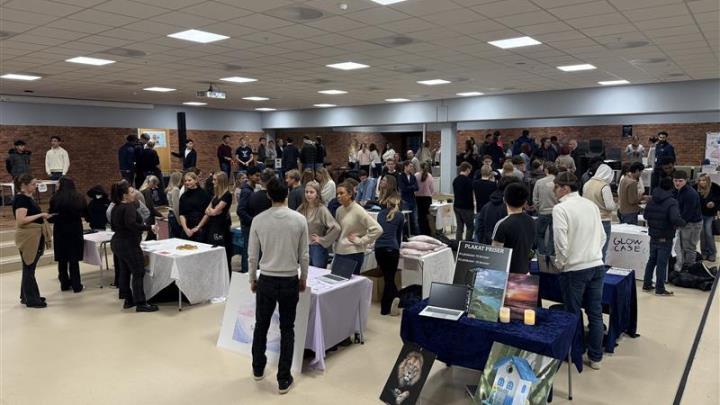 I dag forvandlet aulaen på St. Olav videregående skole seg til et pulserende marked da elever fra salg, service og reiseliv presenterte sine ungdomsbedrifter.