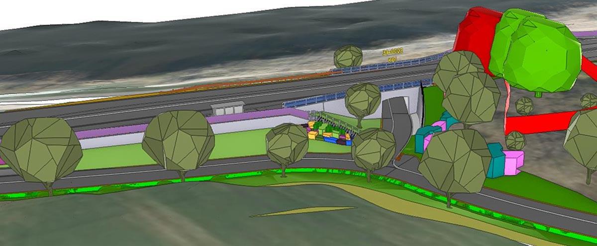 Ved byggestart må det først lages en omkjøring for trafikken på fylkesveien, der ny undergang skal anlegges (se rød prikk).