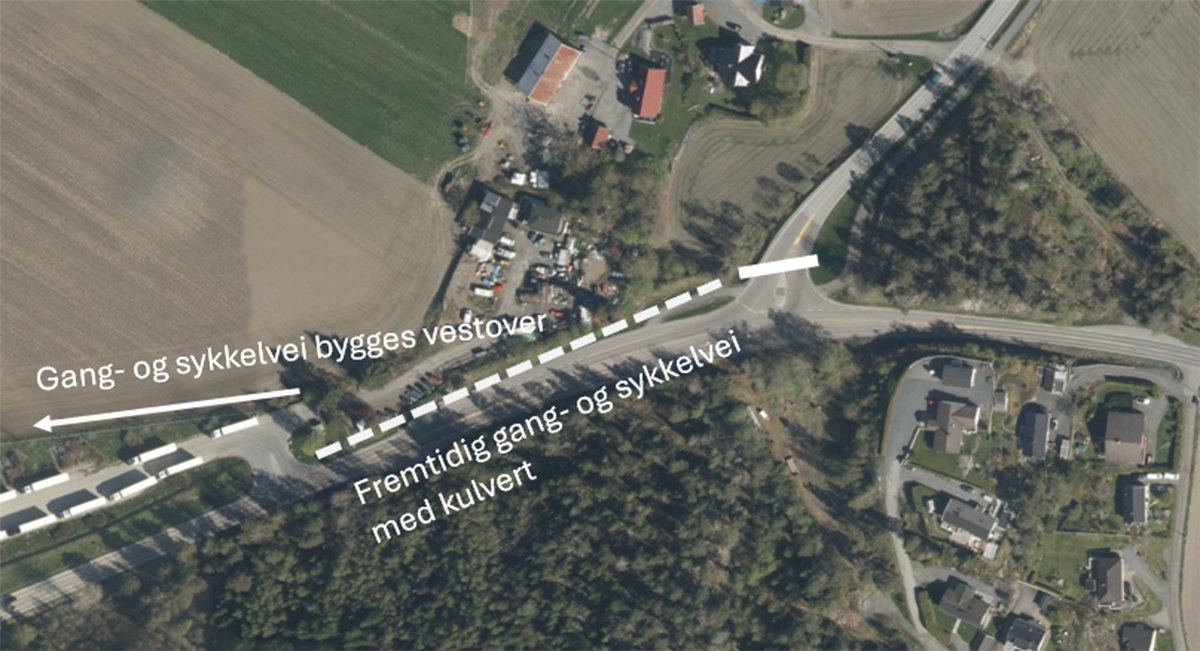 - Planområdet inkluderer derfor arealer som skal vurderes til bruk for midlertidig omkjøringsvei, herunder eventuell håndtering av matjord. Behovet for omkjøringsvei skal vurderes nærmere i planarbeidet.